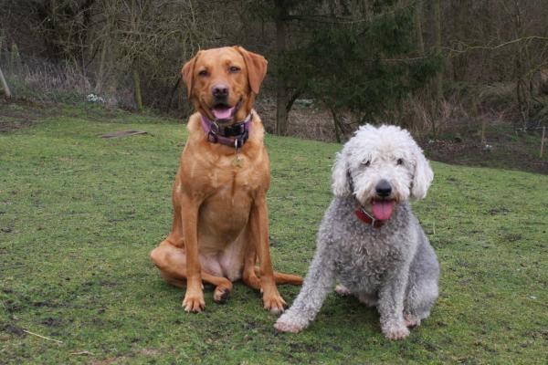 Harry the Bedlington with Lily